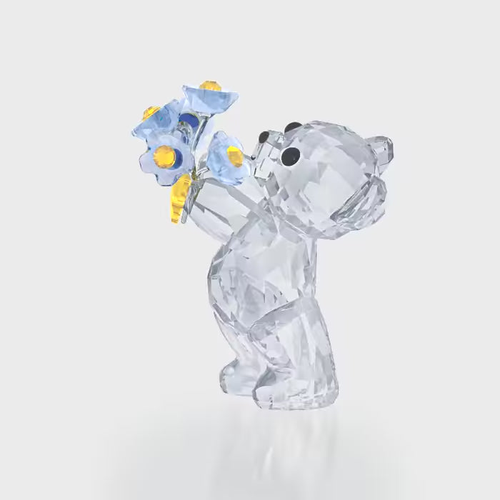 Swarovski's Kris Bear collection is loved all around the world for its cute, cheerful characters. Carefully crafted with 599 sparkling facets, this edition sweetly presents a bunch of forget-me-not flowers. Full of colour and emotion, it would make a meaningful gift for someone special. Decoration object. Not a toy. Not suitable for children under 15.
