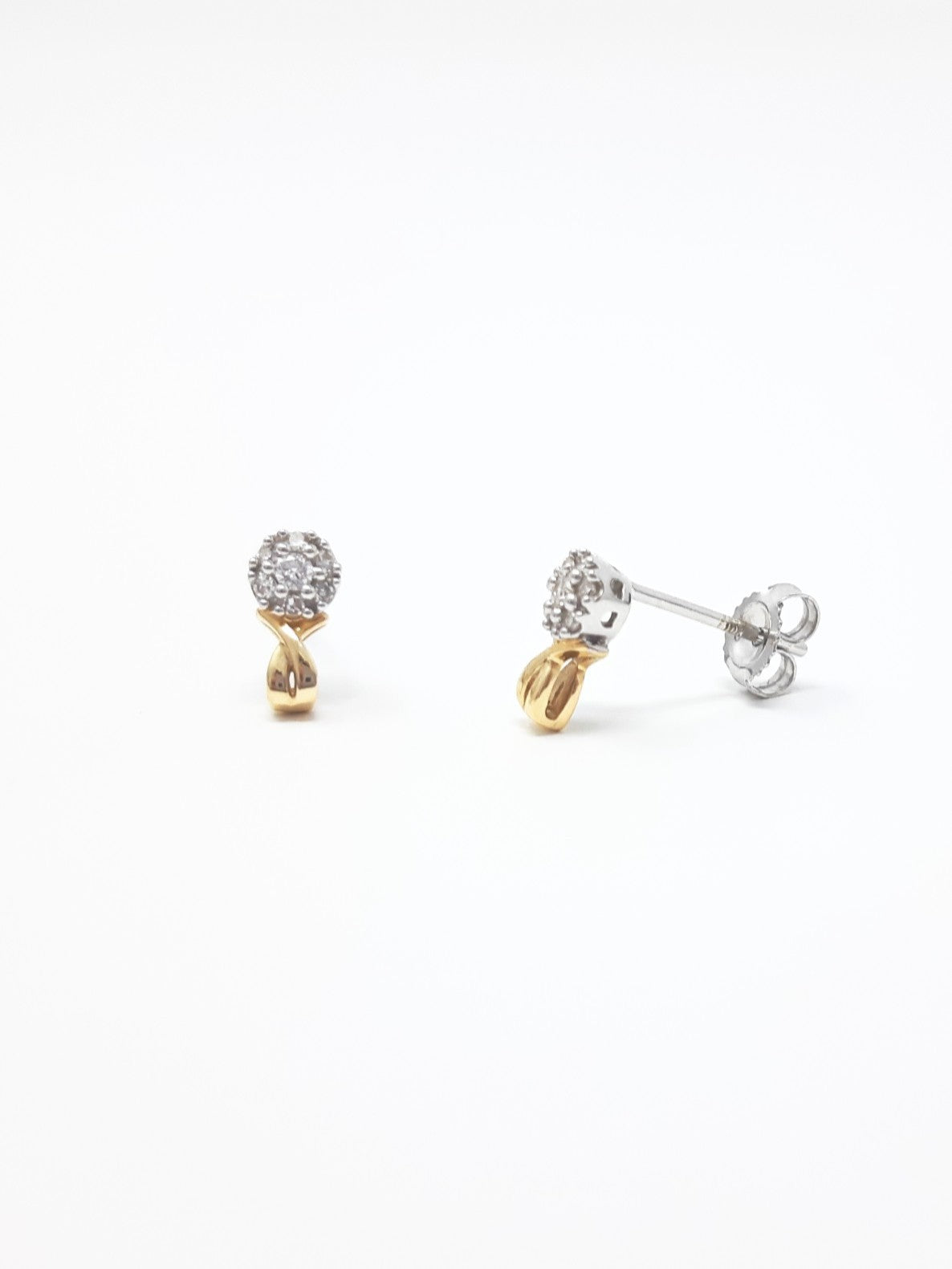 Aretes de diamantes de 0,10 quilates en oro blanco y amarillo de 10 quilates