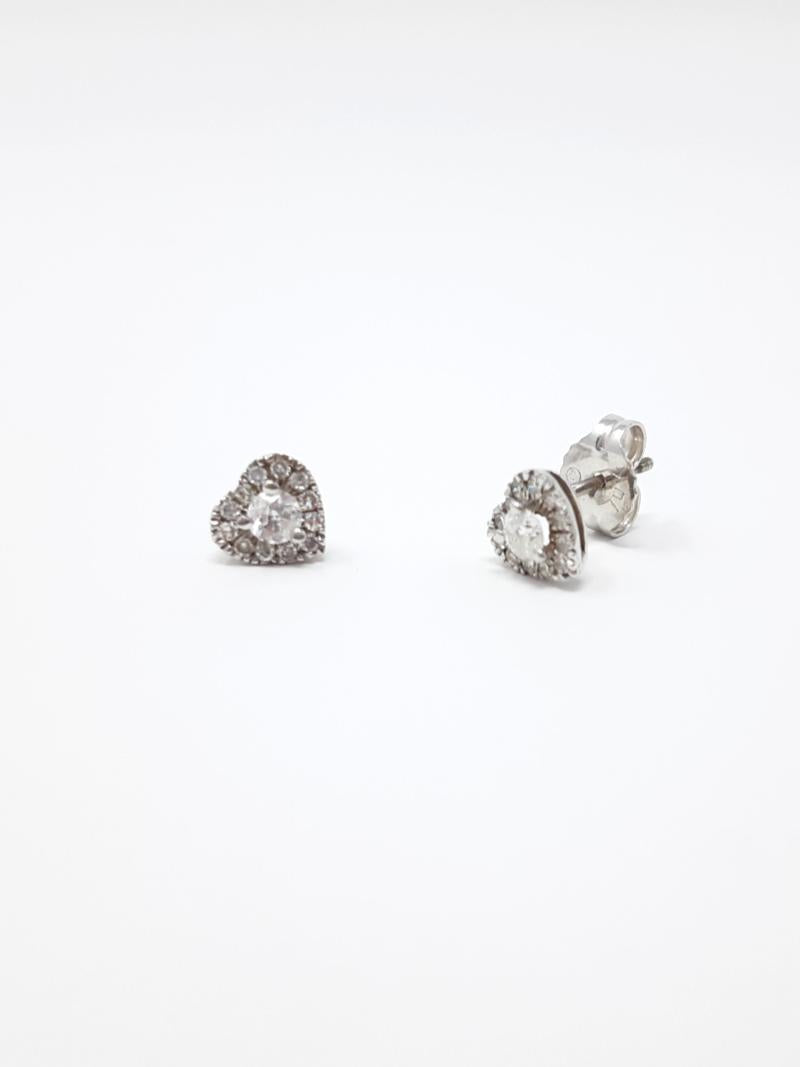 Aretes con forma de corazón de diamantes de 0,12 quilates en oro blanco y rosa de 10 quilates