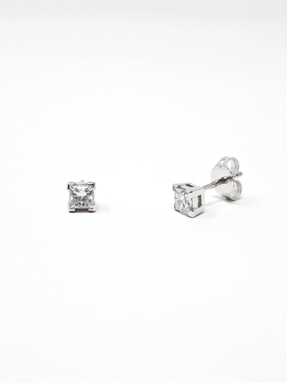 Aretes de oro blanco de 14 quilates con diamantes canadienses de talla princesa de 0,30 quilates