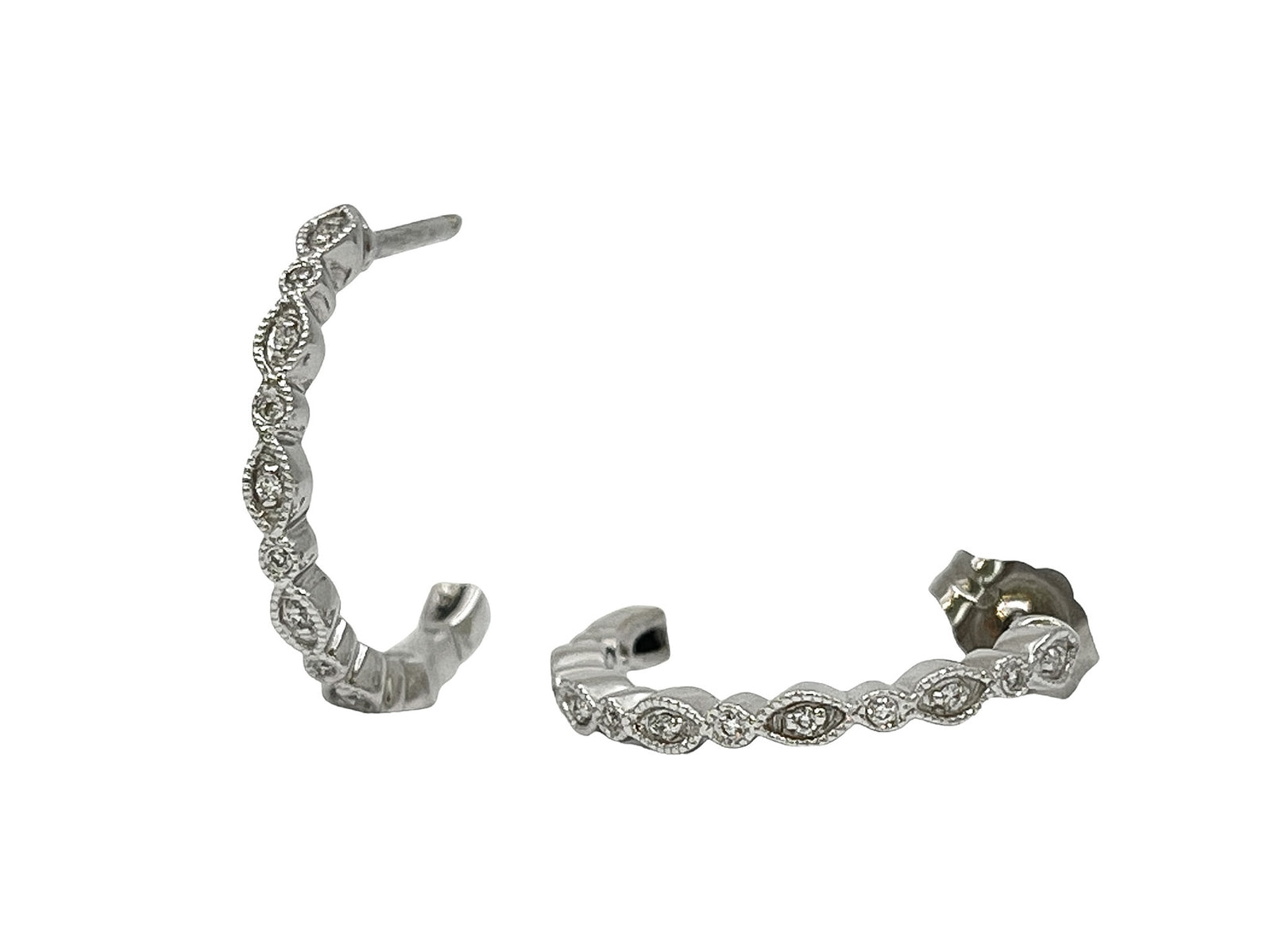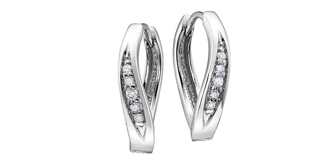 Aretes tipo argolla con diamantes de 0,07 quilates en oro blanco de 14 quilates