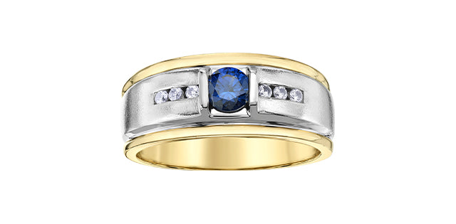 Anillo para hombre con diamantes y zafiros en oro amarillo de 10 quilates, talla 10