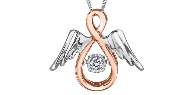 Colgante de ángel con diamantes de 0,05 quilates en oro rosa y blanco de 10 quilates, 18"