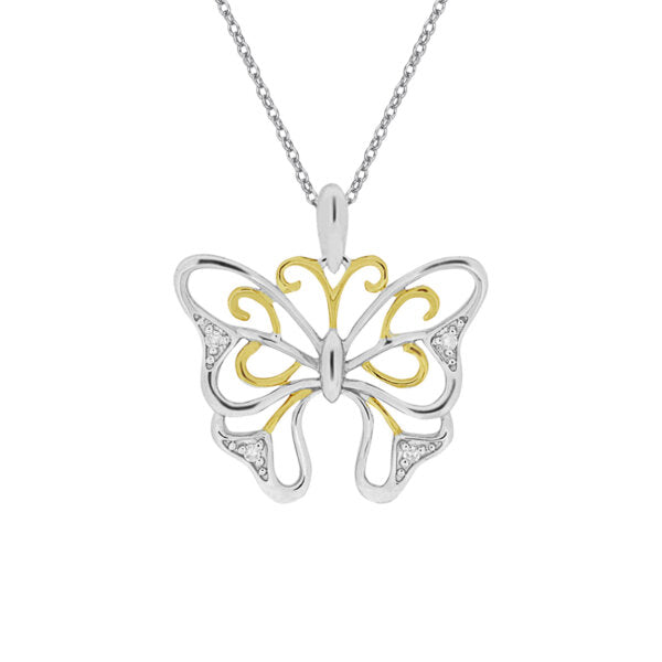 Colgante de mariposa con diamantes de 0,02 quilates en oro de 10 quilates en dos tonos, 18"