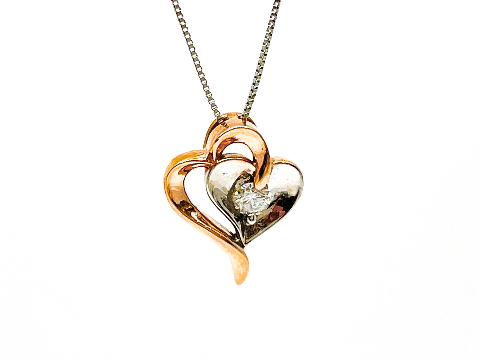 Colgante en forma de corazón con diamantes canadienses de 0,096 quilates en oro rosa y blanco de 10 quilates, 18"