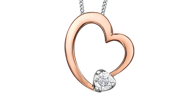 Colgante en forma de corazón con diamantes de 0,01 quilates en oro blanco y rosa de 10 quilates, 18"