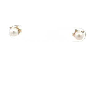 10K Yellow Gold Diamond and Pearl Cat Stud Earrings