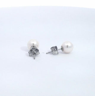 14K White Gold Cultured Pearl Stud Earrings 7-7.5mm