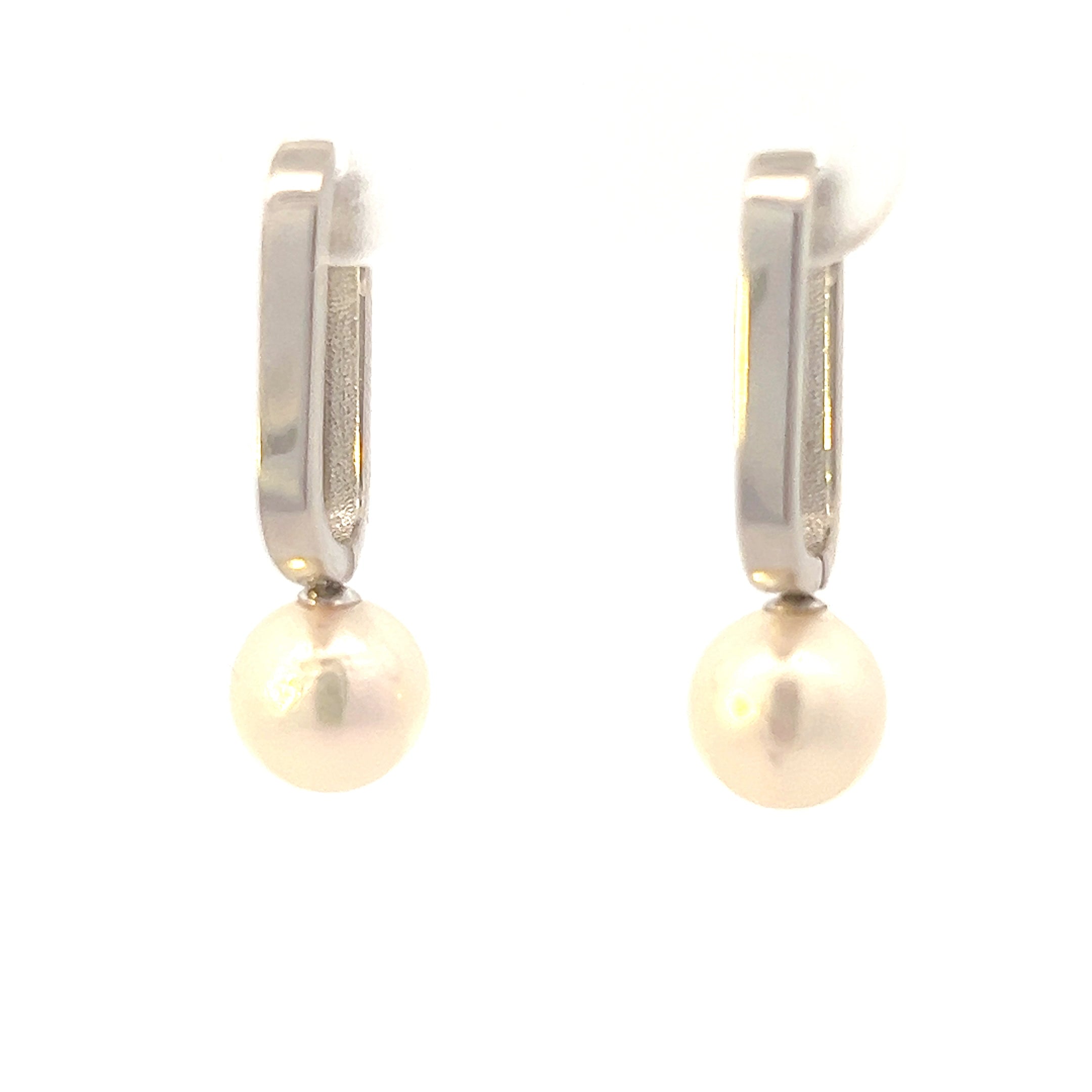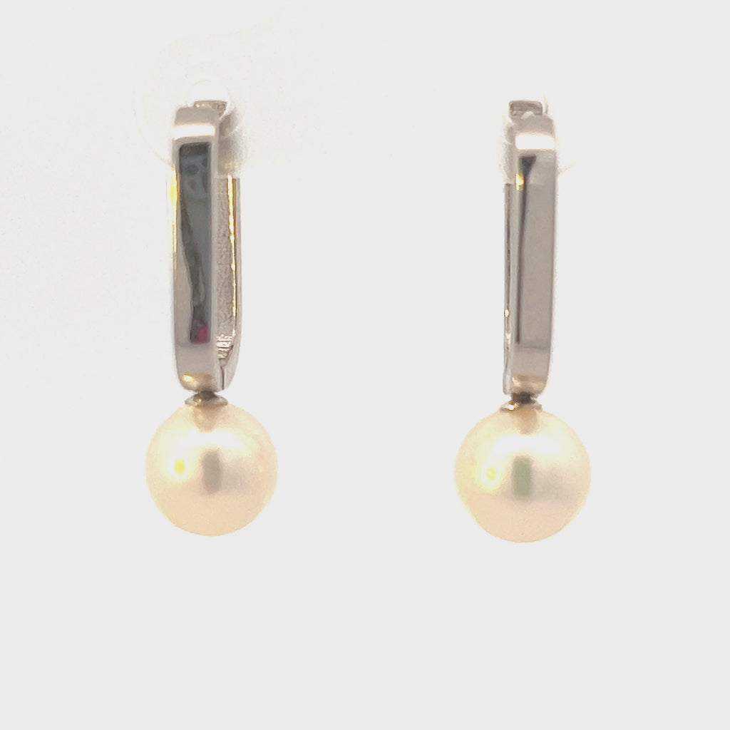 • Pendientes Huggie colgantes de perlas cultivadas de oro blanco de 10 quilates