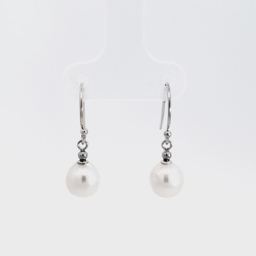 • Arete colgante de perlas cultivadas de oro blanco de 14 quilates de 7 a 7,5 mm
