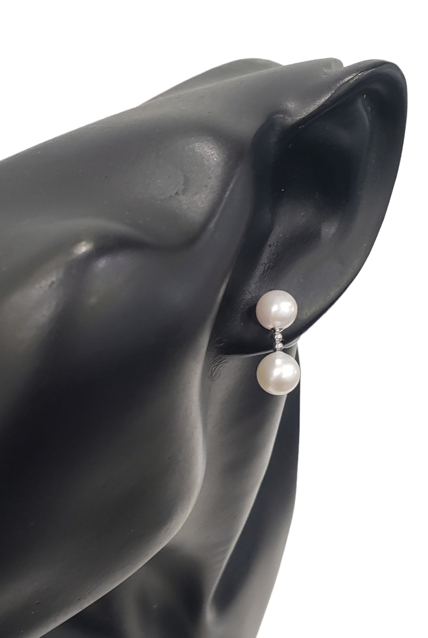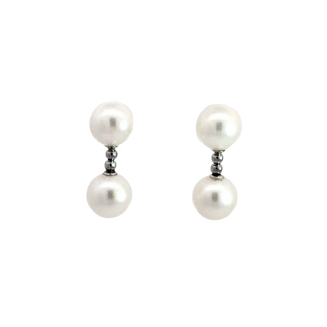 • Arete colgante de perlas cultivadas de oro blanco de 14 quilates de 7 a 7,5 mm