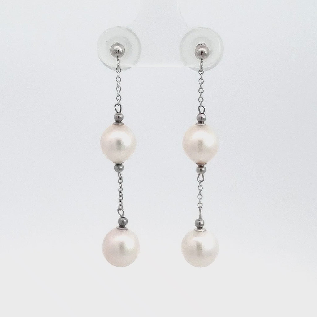 • Arete colgante de perlas cultivadas de oro blanco de 14 quilates de 7,5 a 8,0 mm