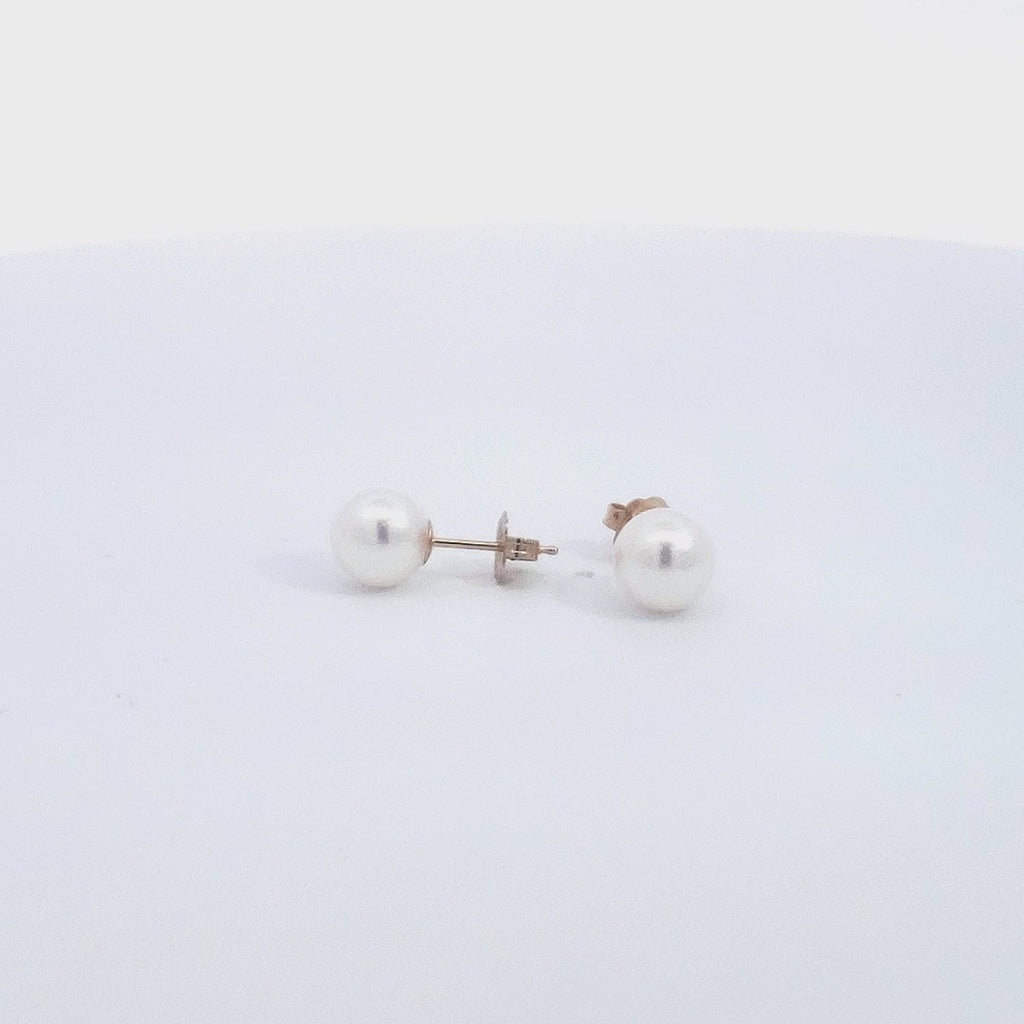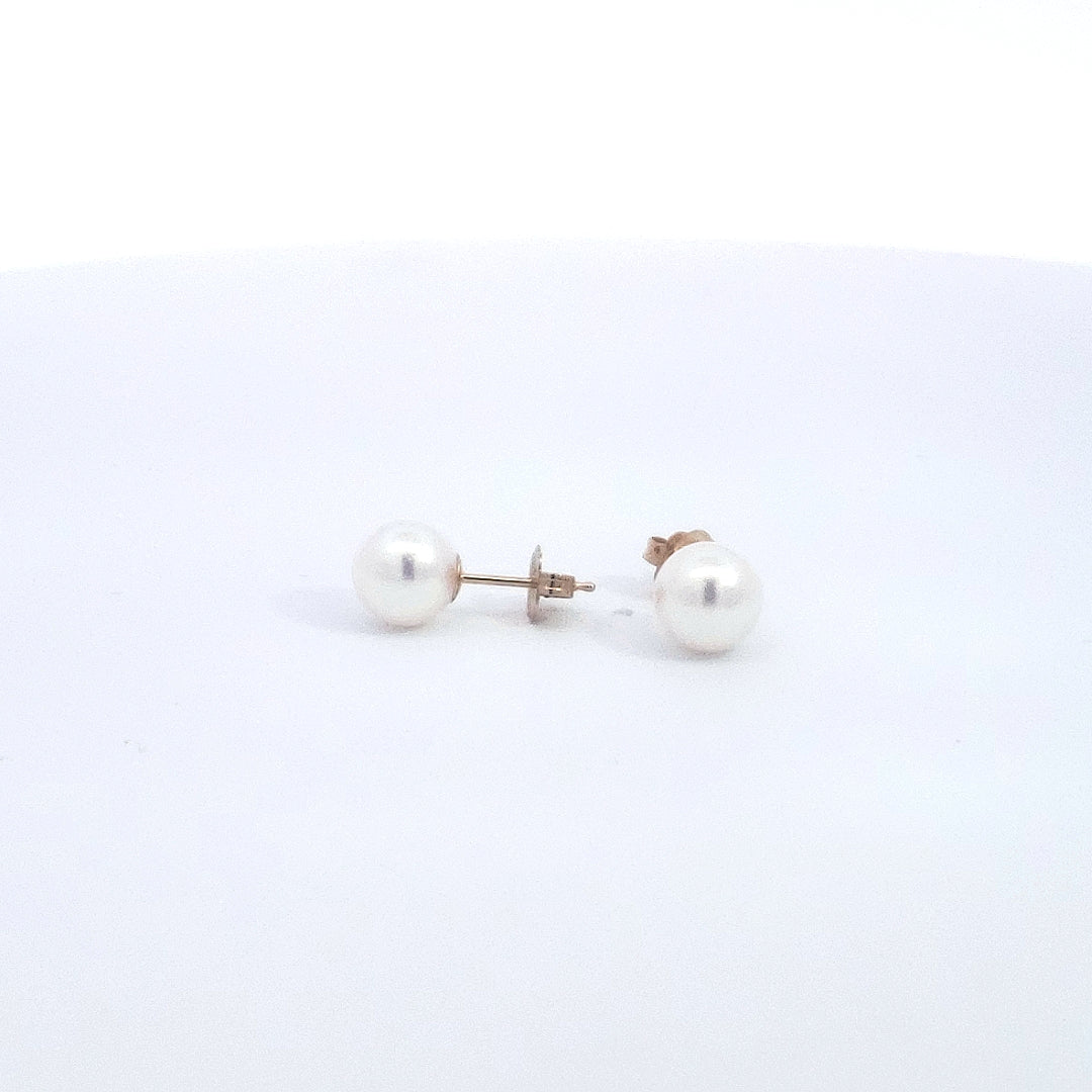 Aretes de perlas cultivadas de 6,5 a 7,0 mm en oro amarillo de 14 quilates con cierre de mariposa