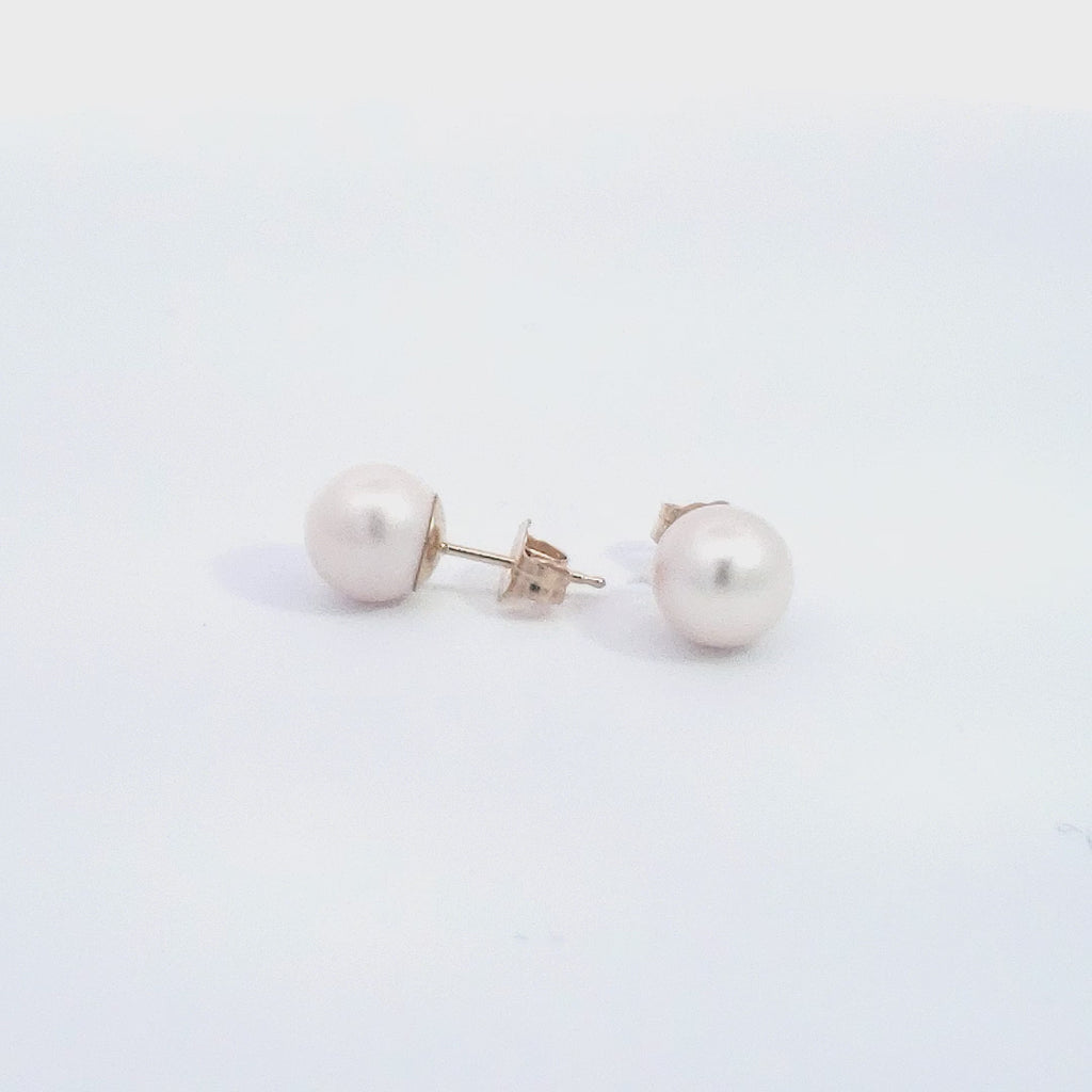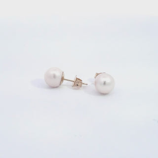 Aretes de perlas cultivadas de 7 a 7,5 mm en oro amarillo de 14 quilates con cierre de mariposa