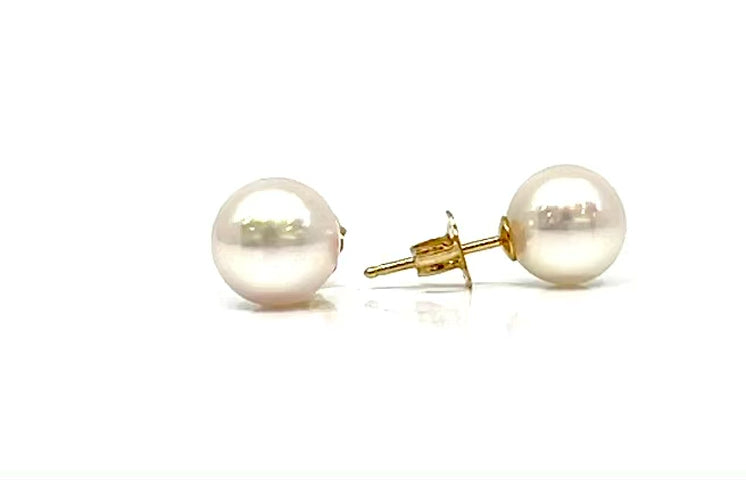Aretes de perlas cultivadas de 8 a 8,5 mm en oro amarillo de 14 quilates con cierre de mariposa