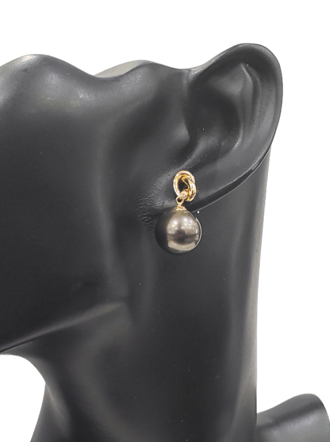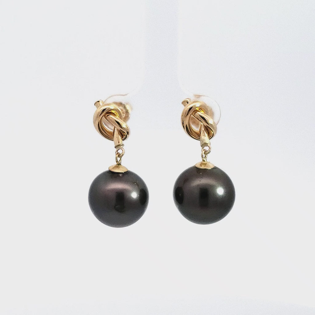 • Aretes colgantes de perlas de Tahití de oro amarillo de 14 quilates con cierre trasero de mariposa