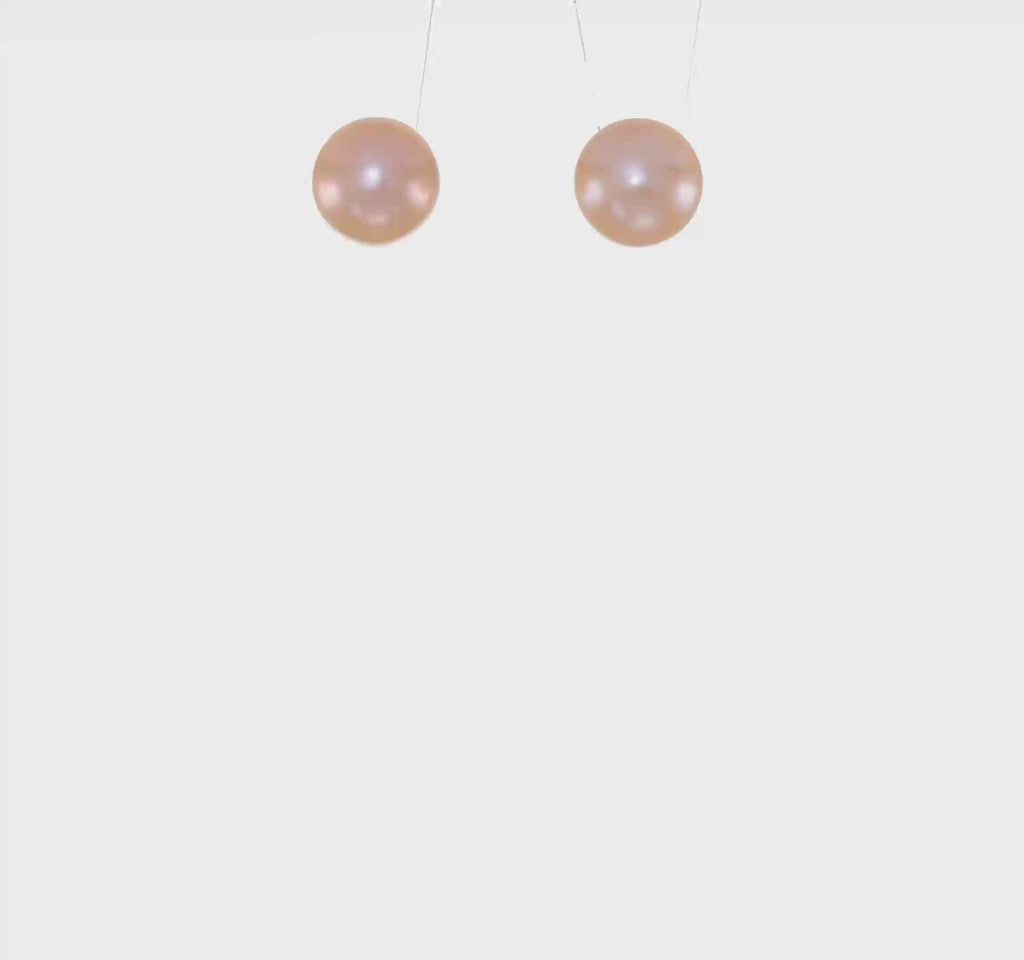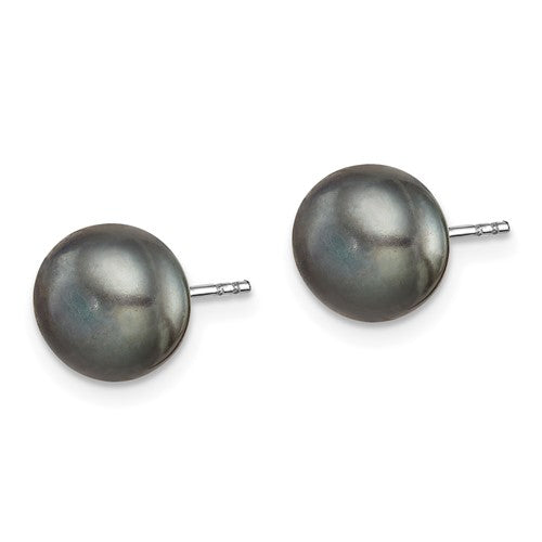 - Juego de aretes con botón de perlas cultivadas de agua dulce de 8 a 9 mm, chapados en rodio, de plata de ley