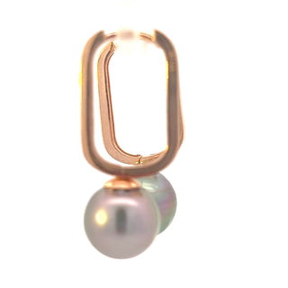 Pendientes Huggie colgantes de perlas de Tahití de oro rosa de 10 quilates