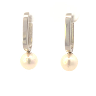 Pendientes Huggie colgantes de perlas cultivadas de oro blanco de 10 quilates