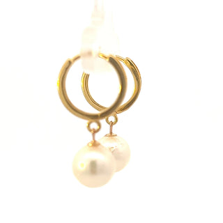 Aretes Huggie colgantes o colgantes con perlas cultivadas en oro amarillo de 14 quilates