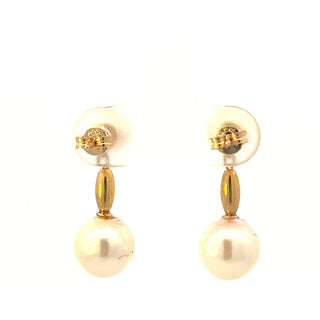 Aretes colgantes de perlas cultivadas en oro amarillo de 14 quilates con cierre de mariposa
