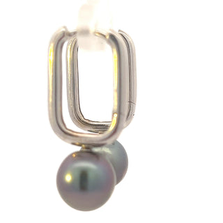 Pendientes Huggie colgantes de perlas de Tahití de oro blanco de 10 quilates