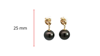 Aretes colgantes de perlas de Tahití de oro amarillo de 14 quilates con cierre trasero de mariposa