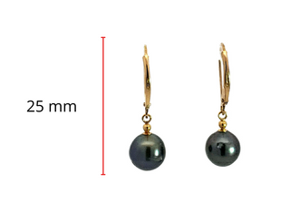 Aretes de perlas de Tahití de oro amarillo de 14 quilates con cierres de palanca