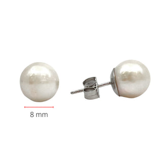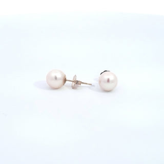 Aretes de perlas cultivadas de 8 a 8,5 mm en oro blanco de 14 quilates con cierre de mariposa