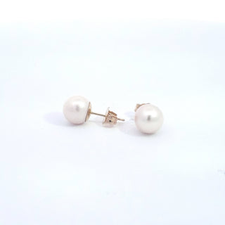 Aretes de perlas cultivadas de 8 a 8,5 mm en oro amarillo de 14 quilates con cierre de mariposa