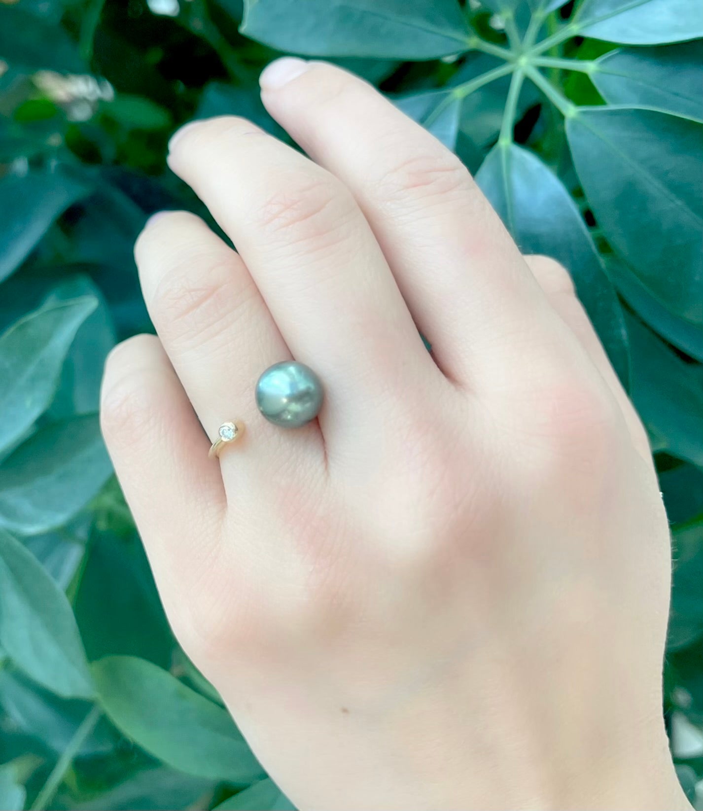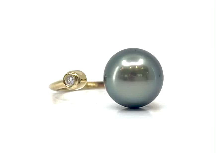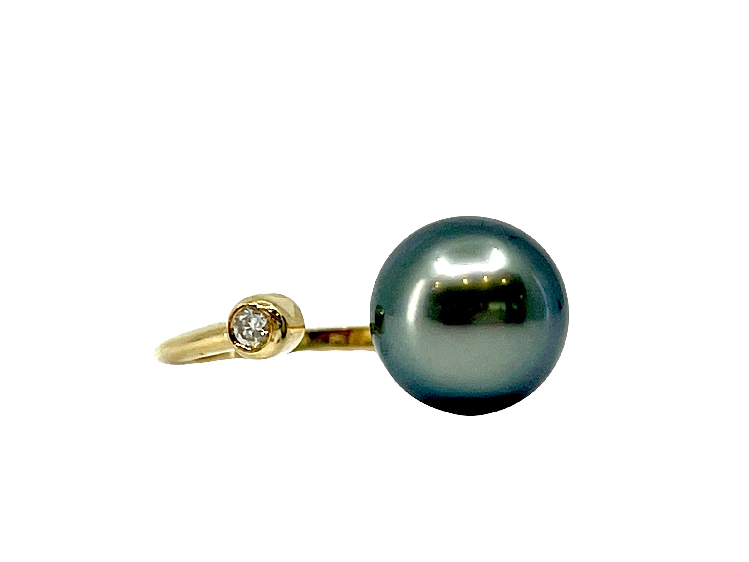 Anillo de perlas de Tahití de oro amarillo de 14 quilates y diamantes de 0,03 quilates