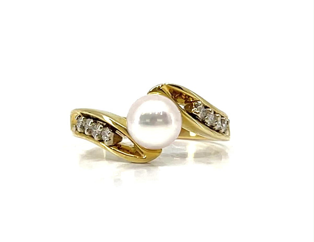 • Anillo de diamantes y perlas cultivadas en oro amarillo de 14 quilates