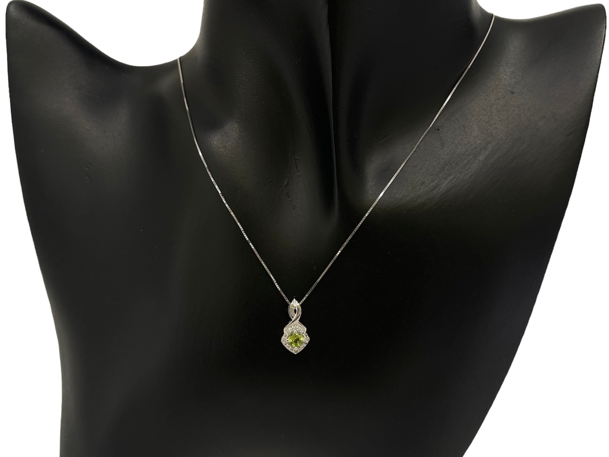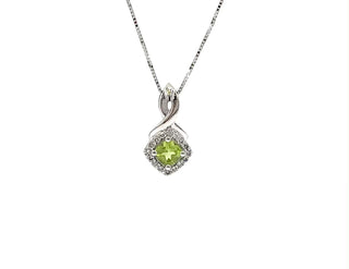 Colgante de oro blanco de 10 quilates con peridoto de 0,40 quilates y diamante de 0,08 quilates, cadena tipo caja de 18"