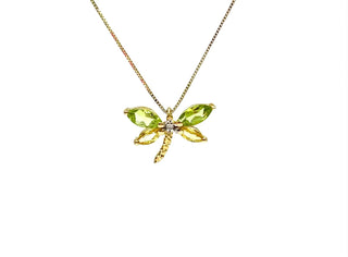 Colgante de libélula de oro amarillo de 10 quilates con peridoto auténtico, zafiro amarillo auténtico y diamante de 0,01 quilates