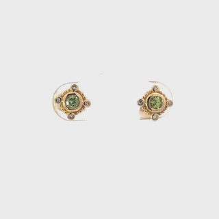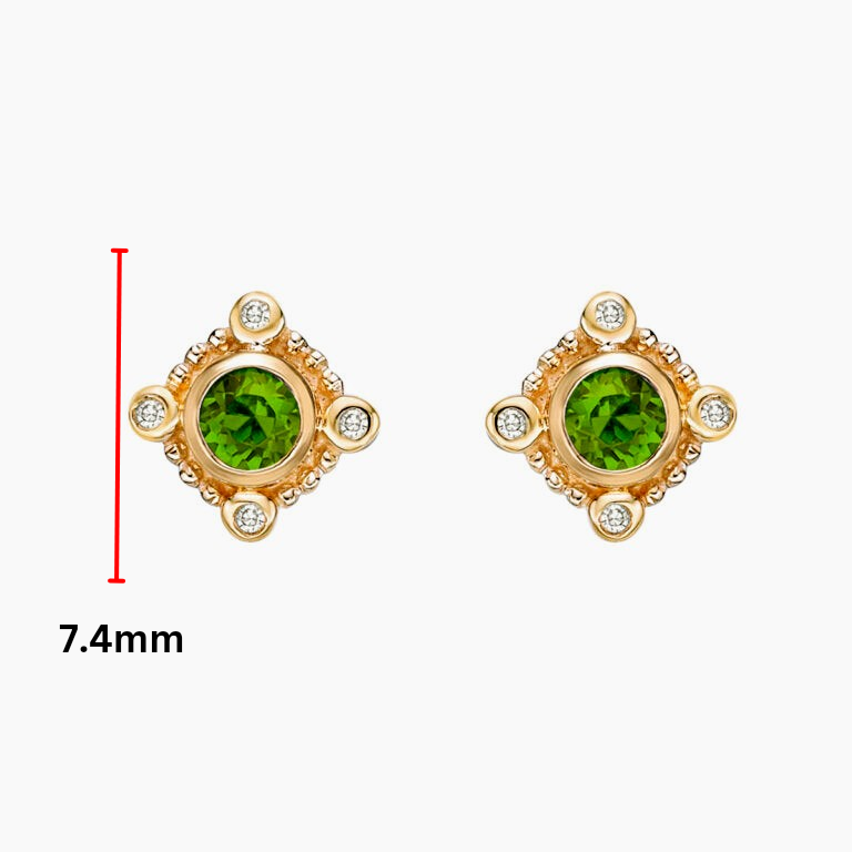 Aretes de diamantes y peridoto en oro amarillo de 10 quilates