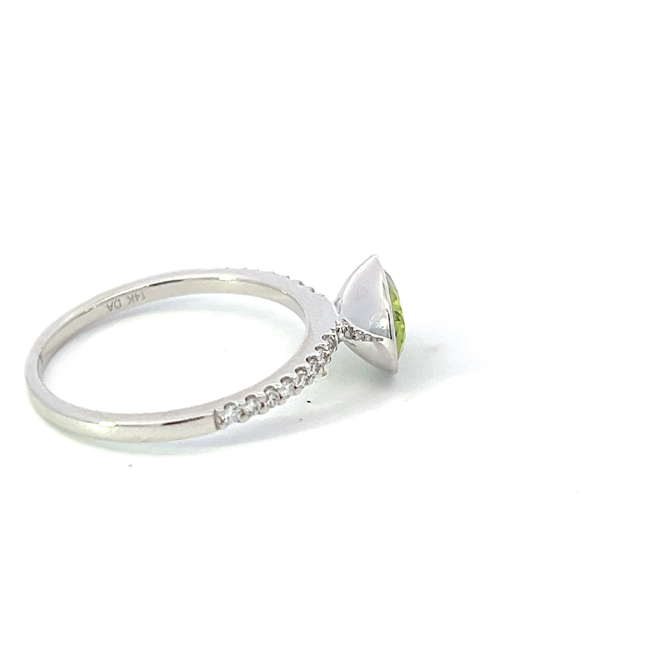 - Anillo de diamantes y peridoto en oro blanco de 14 quilates