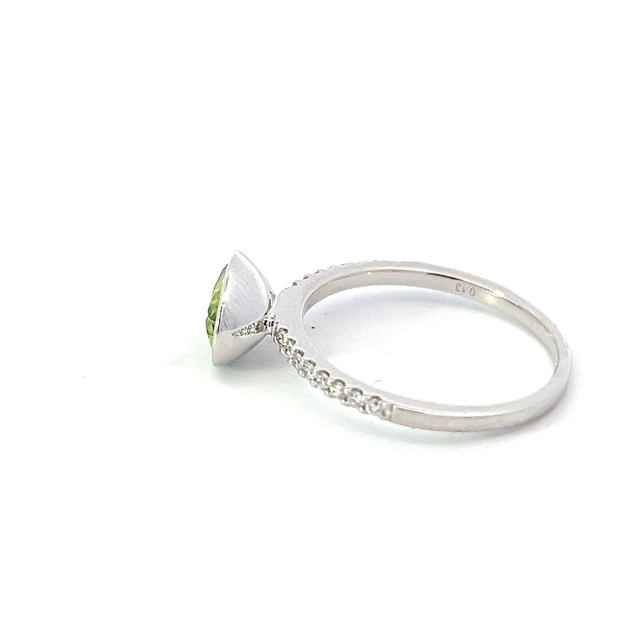 Anillo de diamantes y peridoto en oro blanco de 14 quilates - Talla 7