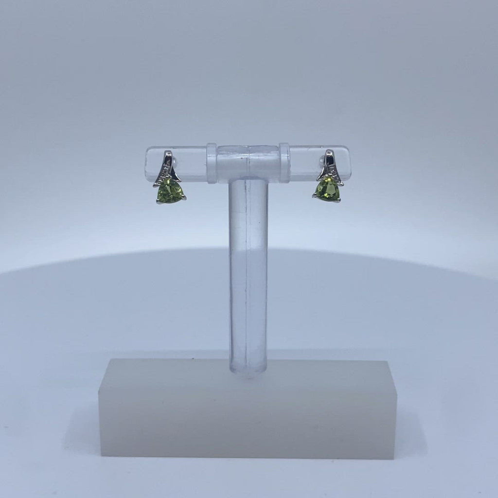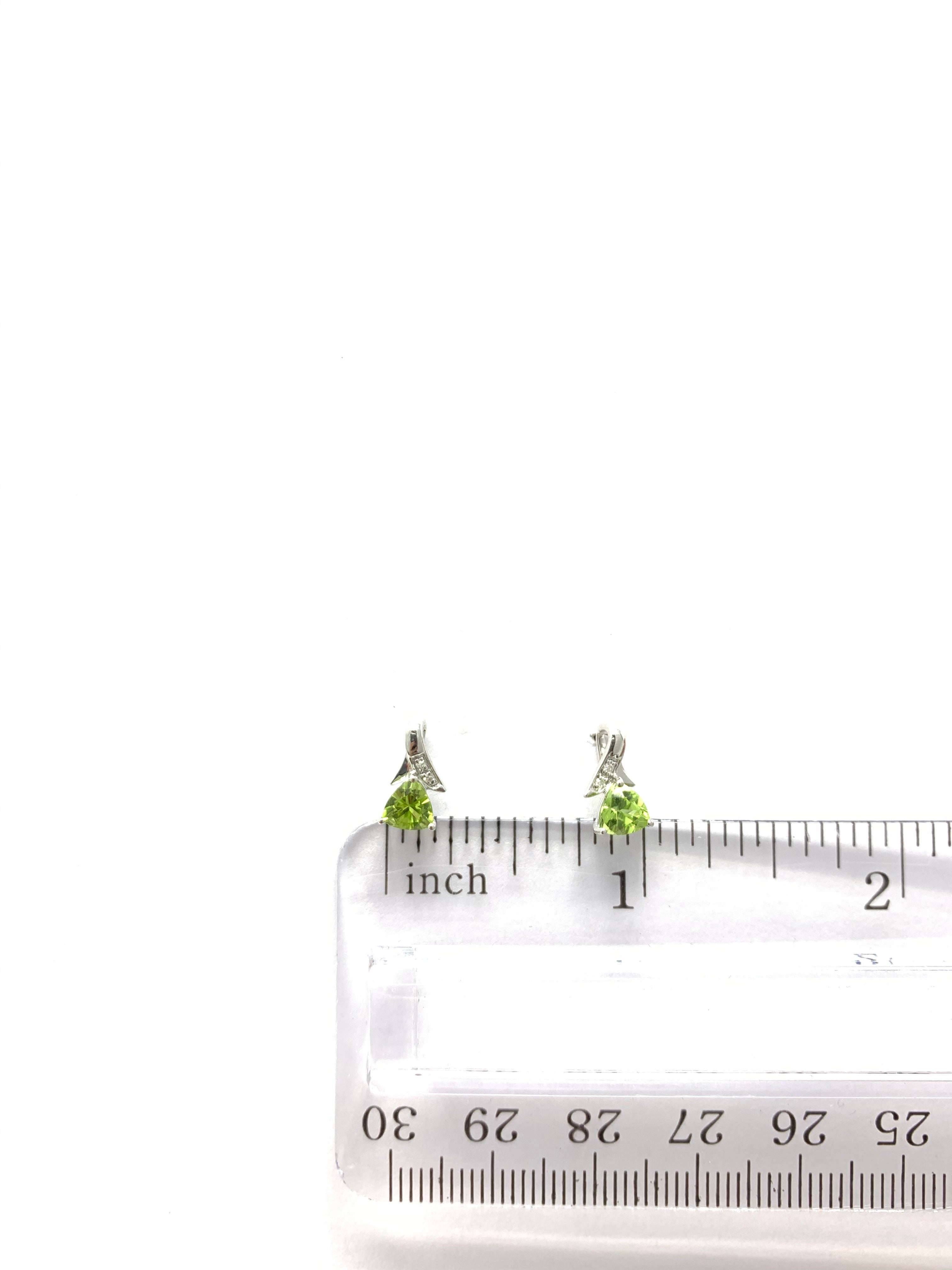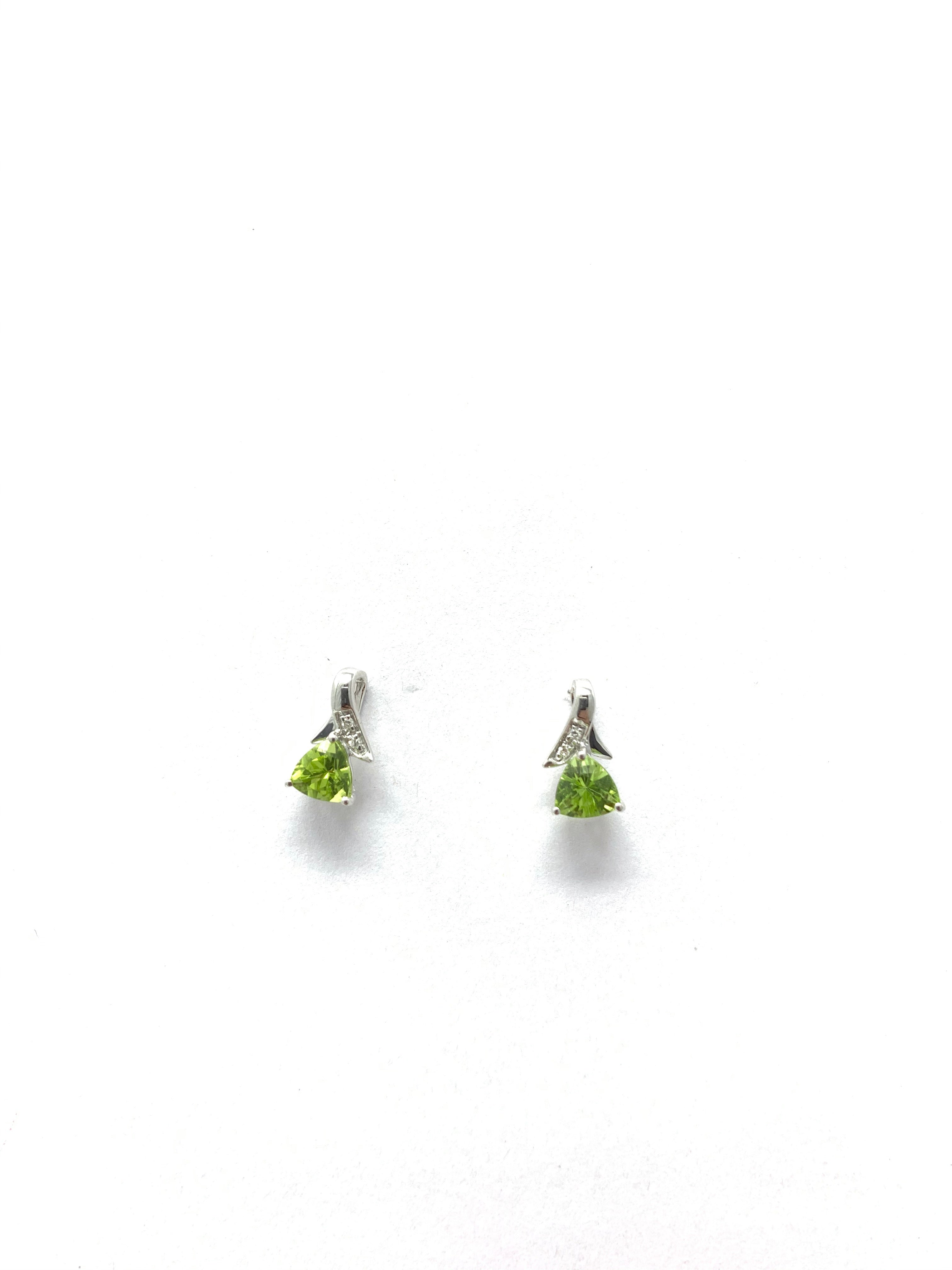 Aretes de diamantes y peridoto en oro blanco de 10 quilates
