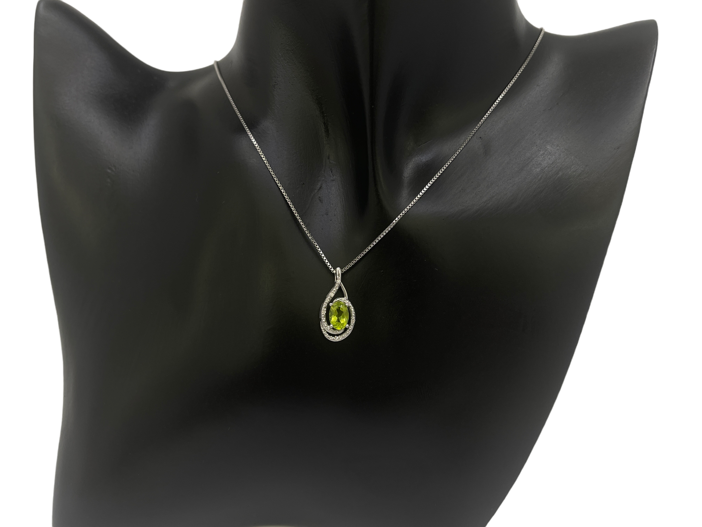 Colgante de plata de ley con peridoto de talla ovalada de 5x3 mm y diamante de 0,036 quilates, 18"