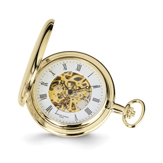 Charles Hubert Reloj de bolsillo con esfera blanca y acabado en oro de 14 quilates