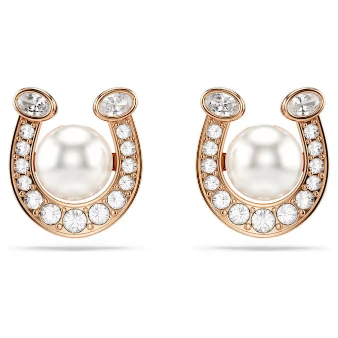 Embrace the free spirit of the horse with these stunning Swarovski earrings. Each rose gold-tone horseshoe is decorated in clear pavé, while a larger Swarovski Crystal Pearl is placed at the centre. A wonderful gift for those seeking a successful new year.