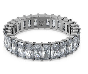 Este anillo Matrix, que combina un aspecto metálico intenso con un brillo llamativo, será un complemento versátil para su joyero. En un proceso que une ciencia y magia, se engarzan piedras grises de talla princesa baguette en una banda chapada en rutenio. Un accesorio cautivador y perfecto para apilar, permitiendo múltiples combinaciones para todas las ocasiones.