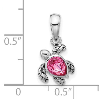 Sterling Silver Rhodium-plated Polished and Antiqued Crystal October Birthstone Turtle Pendant
