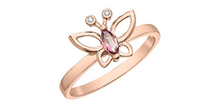 10K Rose Gold Pink Tourmaline and Diamond Butterfly Ring