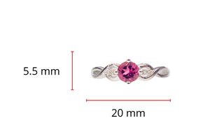 Anillo de oro blanco de 10 quilates con turmalina rosa de 0,45 quilates y diamante de 0,02 quilates, talla 7