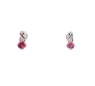Aretes de oro blanco de 10 quilates con turmalina rosa de 0,90 quilates y diamantes de 0,012 quilates con respaldo de mariposa
