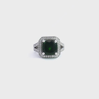 Anillo de oro blanco de 14 quilates con turmalina verde de 3,60 quilates y diamante de 0,56 quilates, talla 7