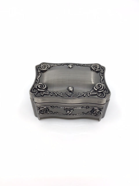 Caja de baratijas de bronce con diseño de acento rosa. Esta baratija única se asienta sobre 4 patas.