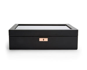 Mantenga sus relojes seguros y con estilo con esta caja para relojes Axis de 10 piezas. Fabricada con cuero vegano, esta caja para relojes puede exhibir maravillosamente hasta 10 relojes. Con cerradura y llave de seguridad, cojines suspendidos para relojes y un puerto USB para reloj inteligente.