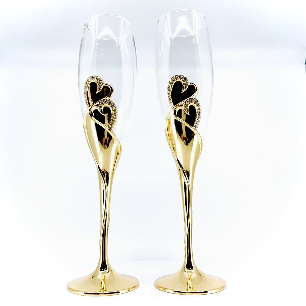 Este juego de champán con corazón eterno chapado en oro es ideal para esa ocasión especial. Es el regalo perfecto para personalizar y añadir ese toque único de sentimiento.